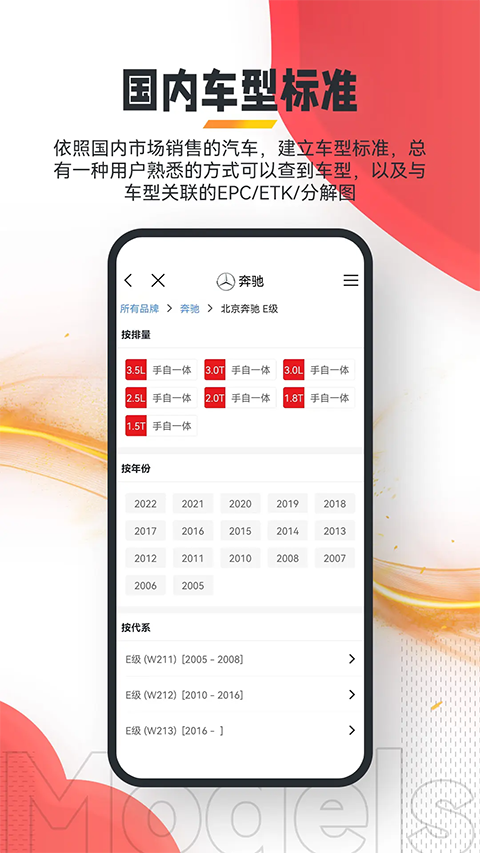 3、通过各大品牌车系车型排量零件分组查询具体车的所用零部件,包含有零件图片,参数,适应的其他车型等;