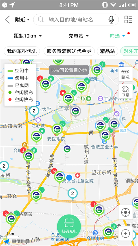 合肥充电app覆盖了合肥市所有电动汽车充电桩的数据信息,用户可以轻松查找附近的充电站,并获取实时的充电桩状态。