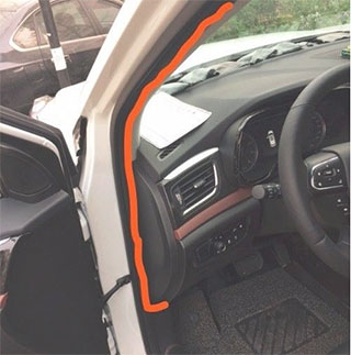 走线1——A柱,靠近车内侧的密封条,直接用手掀起来,就可以把线压进去了。。害怕手疼的,就用个小撬棒。。