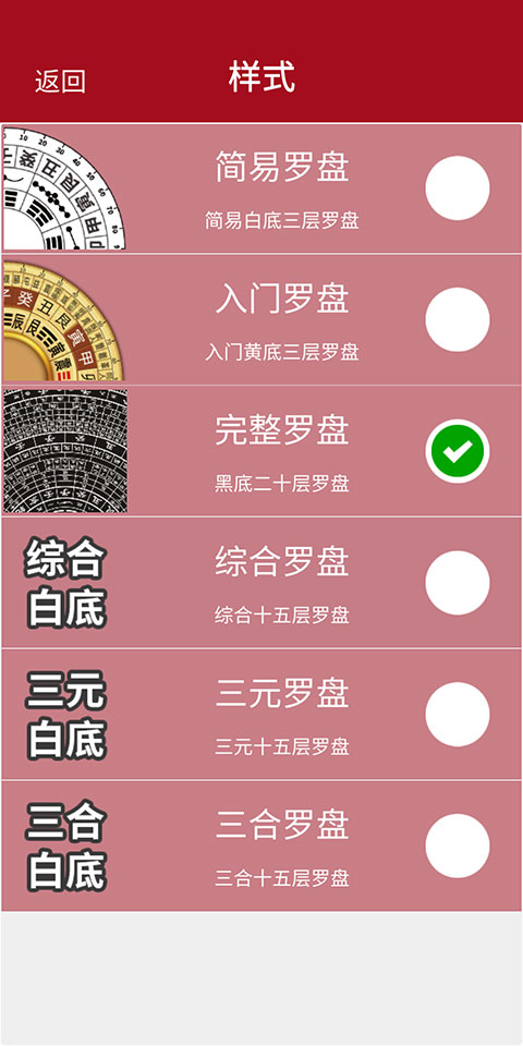 2、然后【勾选】自己满意的罗盘样式,其中就包括了深受用户欢迎的黑底二十层完整罗盘。