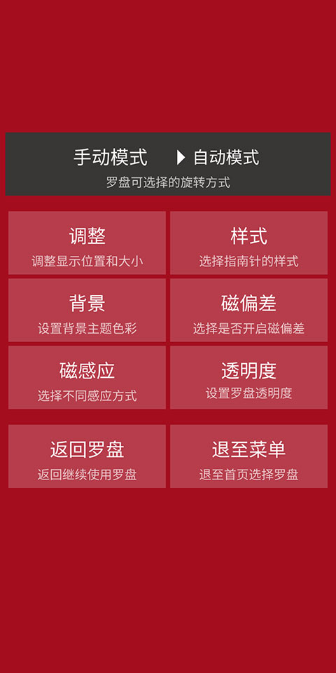 3、默认是【自动模式】,用户只需调整手机朝向,罗盘即会自行转动。