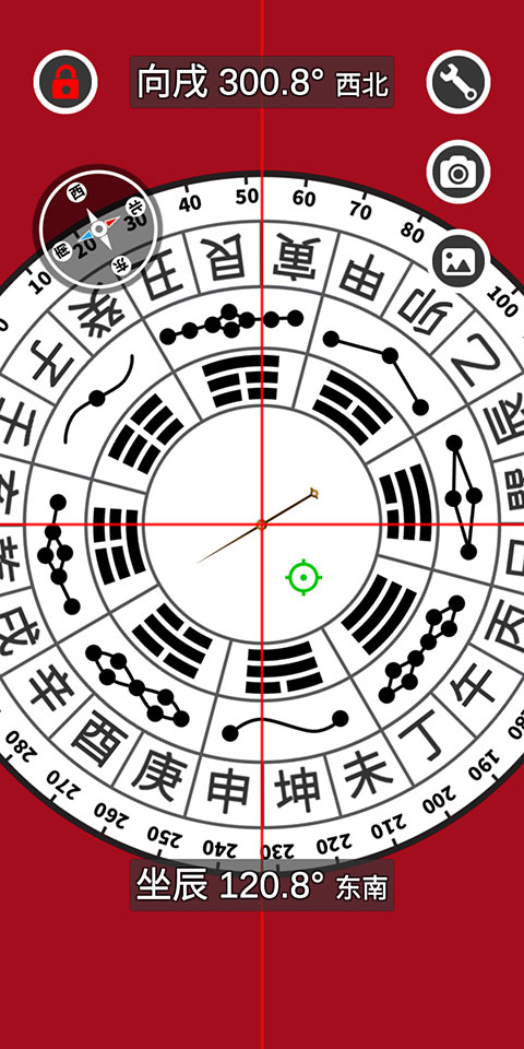 4、点击左上角的【上锁】图标,即可固定罗盘朝向,方便用户进行分析。