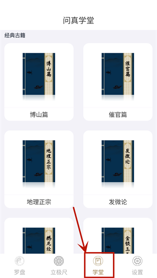 6、同时还有学堂板块,在此还可以学习各种罗盘知识,各种经典古籍供用户查阅。