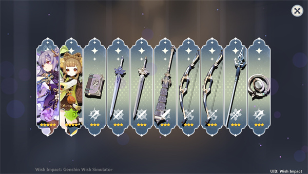4、Wish Impact原神抽卡模拟器抽卡的感觉和原神抽卡几乎一样,但是不需要花一分钱,可以过过瘾,截个图让你的朋友眼红你出的角色和武器。