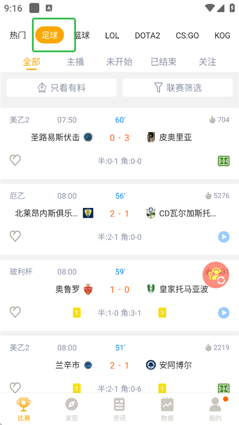 3、拥有覆盖全球的高清足篮体育电竞球赛事直播,包括顶级联赛和地区性冷门赛事。