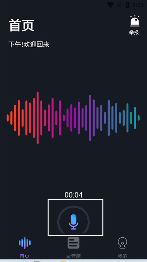 1、首先在首页点击“话筒”标识录一段任意时长的音频。