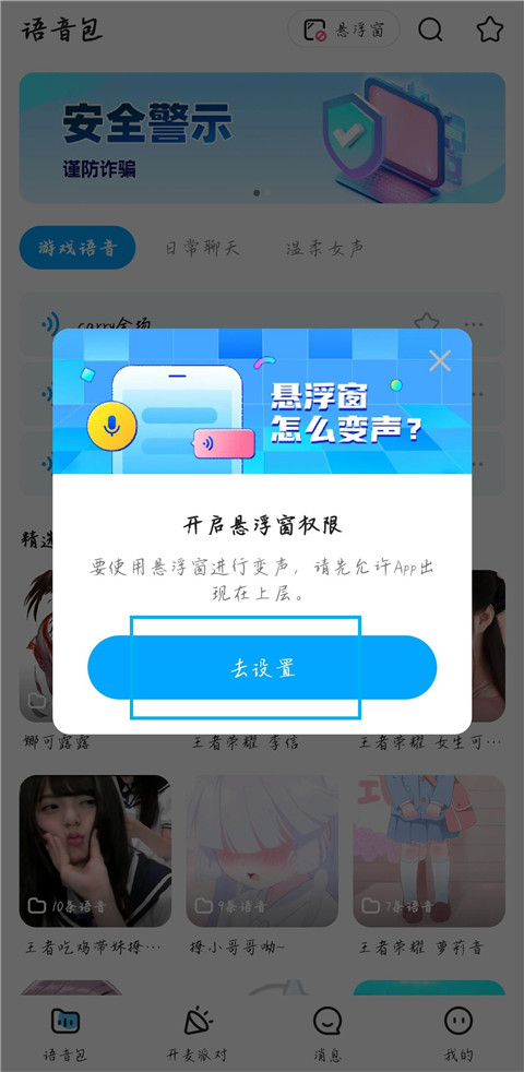 多啦变声器APP可开启悬浮窗,用户可以在微信或者QQ内使用语音包发送变声语音,与朋友随时随地展开变声交流。软件内置多个语音房间,玩家可以在此匹配大神队友用语音互相交流,一起上分冲榜。