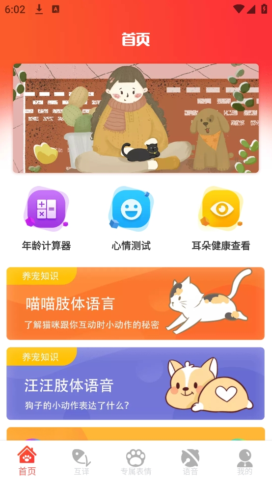宠物交流器是专为养宠物人士开发的动物翻译器,是宠物达人的必备软件!让你知道你的爱犬、猫咪在想些什么。这款软件是集狗狗交流、人狗交流、狗语翻译和猫咪交流、人猫交流、猫语翻译于一体的动物语言交流器!让主人-狗狗-猫咪的沟通更顺畅,关系更亲密!有了TA,您就不用担心喵星人和汪星人不愿意亲近您!通过软件里的翻译功聆听猫咪狗狗的心声,还可以将铲屎官的声音转化成狗语和猫语,让人和猫狗交流更轻便,探索不一样的猫狗世界!更有动物园上各种动物真实叫声,让你和孩子了解大自然的声音。