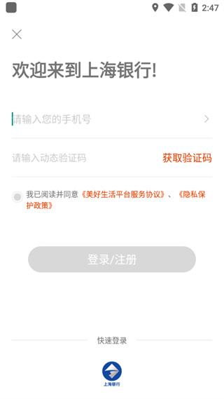 1、登陆账号,也可以使用上海银行的账号快速登陆;