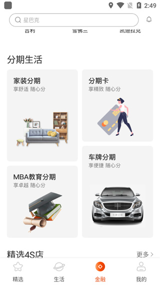4、金融界面则是可以查看一些汽车或者分期购物啥的。