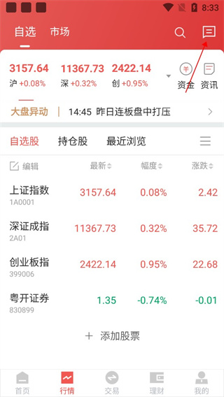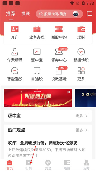 2、接着点击“行情”;
