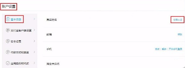 1、登录支付宝账户( www.alipay.com),点击【账户设置】—【基本信息】—【立即认证】