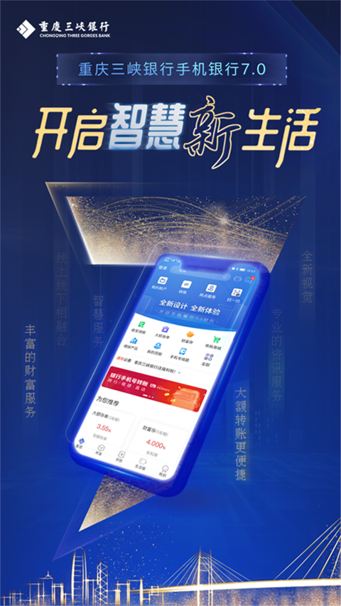 携带财富人生卡和本人有效身份证件到我行任意网点开通手机银行。开通后,打开已安装好的“重庆三峡银行”,通过签约手机号和登录密码即可登录享用手机银行全部服务。