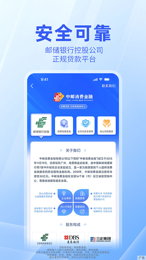 中邮钱包App是一款非常权威的正规的移动金融理财软件,提供贷款、理财、股票资讯等特色服务。中邮消费金融有限公司是经银保监会批准,由中国邮政储蓄银行作为主要出资人发起成立的全国性持牌消费金融机构。你可以完全相信中邮钱包。用户可以通过中邮钱包在手机上一站式完成无抵押信用贷款服务,最快8分钟现金到帐。