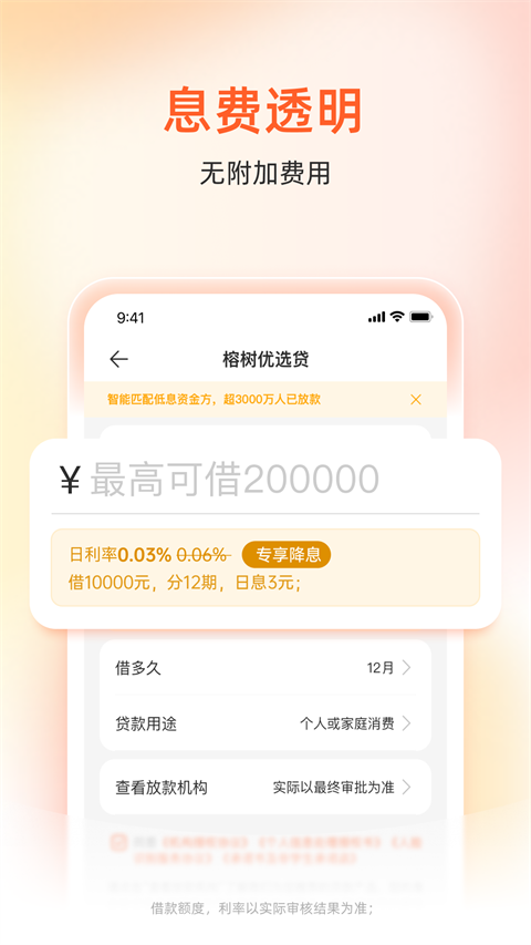 1、息费透明:1万元借1天利息仅2元起