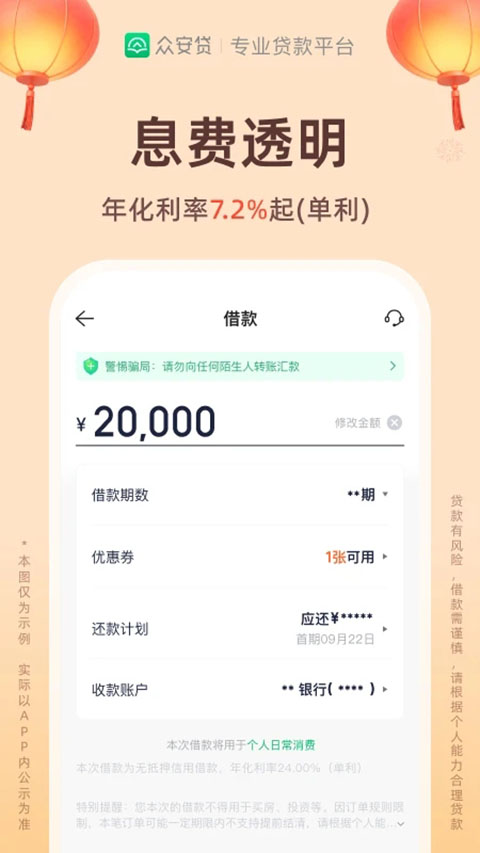 众安小贷app是重庆众安小额贷款有限公司推出的无抵押、纯线上消费信贷平台,专注为个人和小微企业主提供即时到账的贷款服务。是合规运营,符合国家监管要求的消费信贷平台。