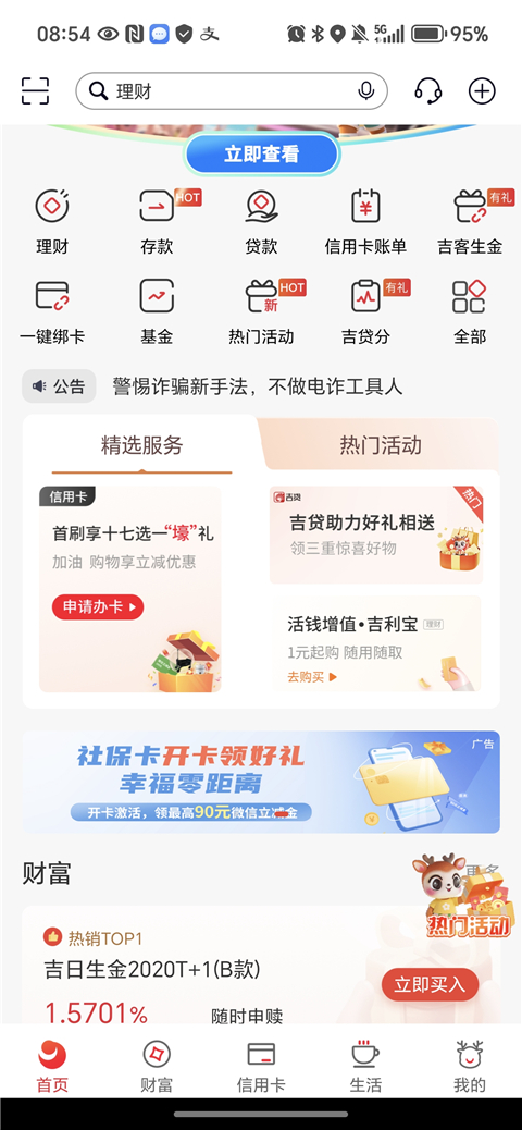 2、理财服务:包含活期、定期储蓄、增利账户、理财、基金等服务。