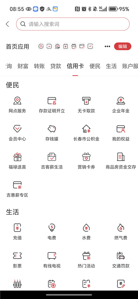 1、打开吉林银行APP,登录自己的账户,在APP首页寻找“全部”菜单中,点击进入。
