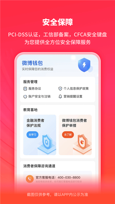 微博钱包App是微博旗下一款金融产品综合服务平台,它为用户提供安全便捷的信用贷款、消费分期等服务。微博钱包App登录流程简便,用户可使用微博账号直接授权,且通过设置包含字母、数字及特殊字符的支付密码可保障安全。而在完成个人信息与银行卡绑定后,用户即可使用账户余额、网银或银联等多种方式进行支付与信贷操作,从而满足日常消费与资金周转需求。