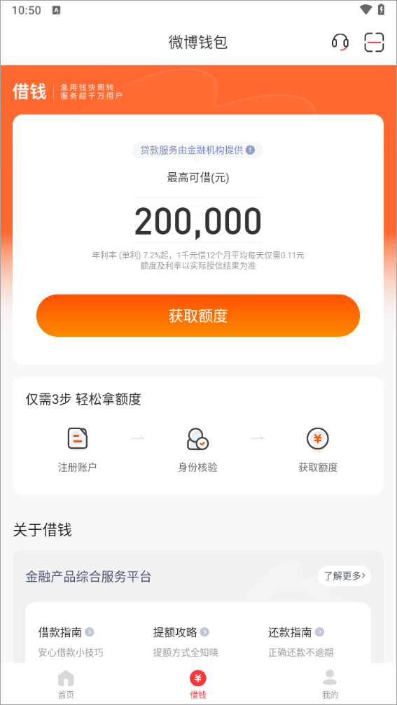 微博钱包APP·借钱频道属于微博官方平台,贷款资金来自合作的各大持牌金融机构,平台不提供任何贷款资金,合作金融机构资质齐全,为您提供专业、智能、便捷的个人消费借贷服务。