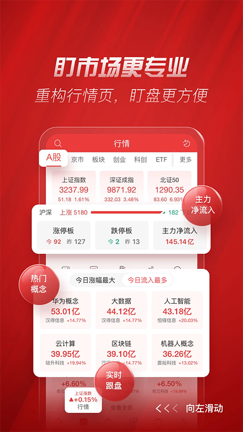 短线雷达、热门概念、资金流入,实时洞悉异动、热点信息。