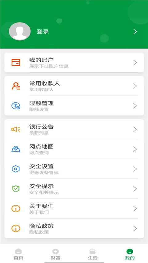 山西农信App是山西省农村信用社针对个人用户特别推出的手机银行客户端,具有全省存贷款余额最高、支农支小力度最强、金融服务最宽、机构覆盖最广等特点。包含了农村商业银行、农村合作银行的所有线下业务,让广大用户足不出户即可享受优质的金融服务。除此之外,软件界面UI友好简约,操作过程简单便捷,数据内容呈现清晰明了,针对千万持卡用户的实际账户资产管理需求,全面提供账户管理、转账汇款、支付缴费、理财业务、客户服务等多项实用银行服务,让用户实时同步官方银行系统进行操作。山西农信联合线下线上,为用户打造一个完整的银行金融信息服务系统,平台还不定期推出各种优惠活动,等你来参与。采用了多重密码保护机制加手机动态密码多重认证,既保障了交易双方资金的安全,又能有效防止用户信息发生泄露,为您提供更好地使用体验。专业、强大、多功能,欢迎有兴趣的朋友前来下载体验!