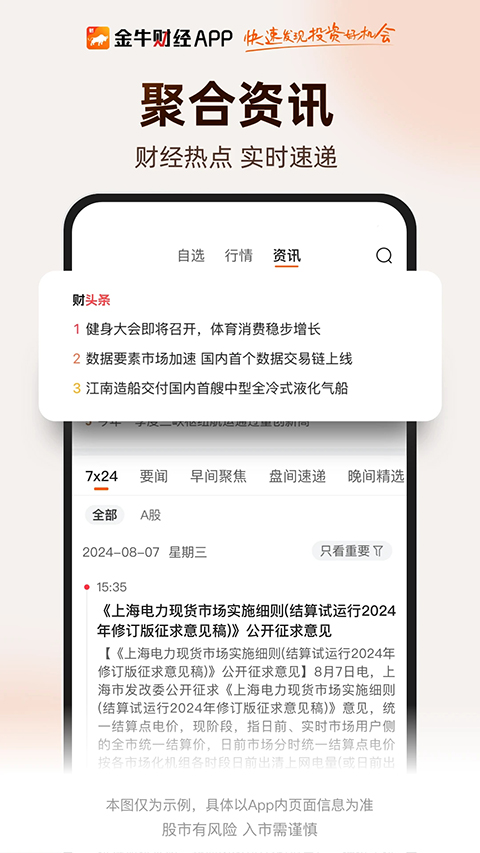金牛财经app还有着实时行业快讯、市场热点信息、早晚盘评述、财经头条筛选等个性化推荐资讯等来帮助用户们在股市中化繁为简取得市场先机,并且还融入了非常全面的行情来了解到各种各样不同的行情数据,另外在软件当中你都能够一手掌握轻松得了解最全面的数据内容来为用户们的投资知识面带来更大的帮助。不仅如此,在金牛财经app中还有着一键开户、热门基金、财富积累等功能满足您一站式金融理财需求,同时更是有着条件选股、形态选股、地雷提醒、龙虎热榜等全新功能让用户们在股市中运筹帷幄一路长虹!