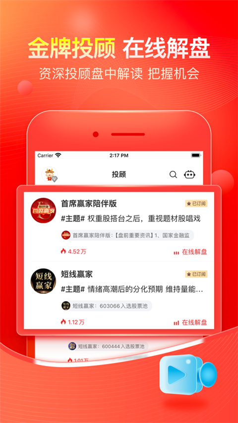 2、拥有数百位的专业投顾团队提供的直播、荐股、诊股、课程、交流咨询等一站式陪伴服务