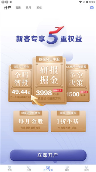 3、点击开户交易,新客专享5重权益;