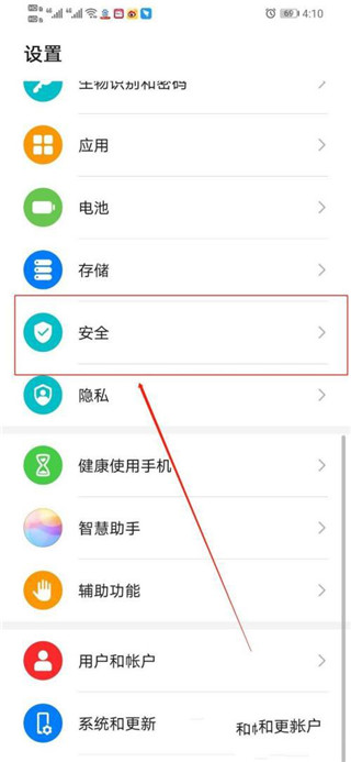 3、在“设置”中,向上滑手机,找到“安全”;