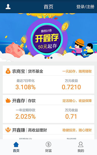 2、登录之后首页即有青岛农商银行直销银行的三大理财系列产品。若是觉得还不够,点击“财富”栏,有更多财富选择!