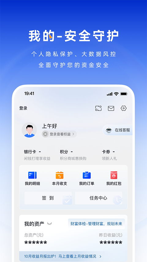 大数据及端侧技术识别能力,打造安全矩阵,构建“可信+可疑”的大数据风控体系,全面守护您的个人隐私和资金安全。