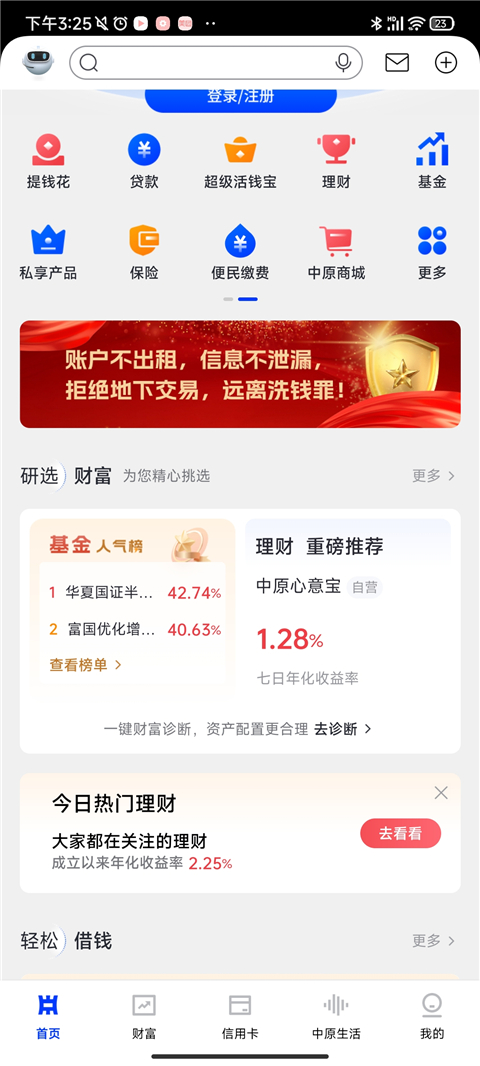 1、打开中原银行APP,在首页顶部导航栏找到更多模块。